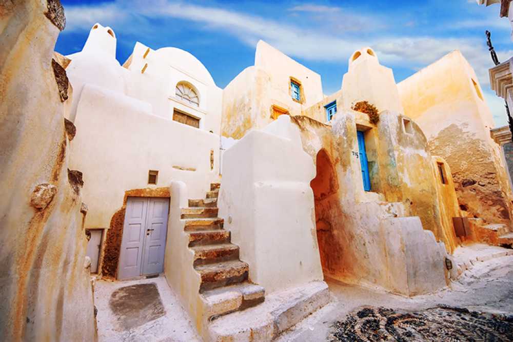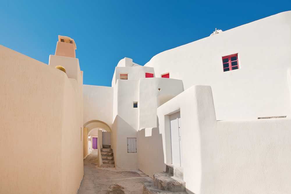 There one can find pool bars, clubs, a vivid nightlife and the most popular beach resorts with many facilities. Another remarkable spot is the Gavrilos hills that have eight traditional windmills and offer a ravishing view. The village holds admirable blue-domed churches and tiny chapels, among them the great church of Agios Nikolaos Marmaritis which is made of marble. The big attraction of Emporio is the medieval Kasteli, one of the five fortified castles of Santorini. Inside the castle there is a church that dates back to the 16th century or earlier. In close distance lies the Tower of Nimborio (The “Goulas”), a square building that was used as a watchtower and a refuge. Source: www.santorini-view