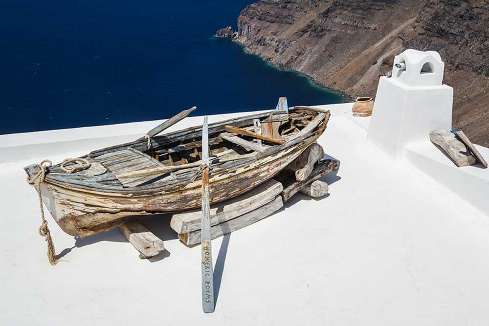 The Church of the Panagia Malteza has a marvellous carved wooden screen with icons depicting scenes from the Old Testament. There is a path from Imerovigli caldera walkway to Skaros Rock and the Chapel of Panagia Theoskepasti. Fortified Settlements of Santorini : Skaros Rock Skaros was one of the five fortified settlements and the most important one. At that time it was referred to simply as ‘Kastro’ (castle in Greek). The rock was inhabited in medieval times, because the fortress built there offered protection from pirates. Skaros was the capital of Santorini until the 18th century, although evacuation of Skaros started at the beginning of the 17th century.