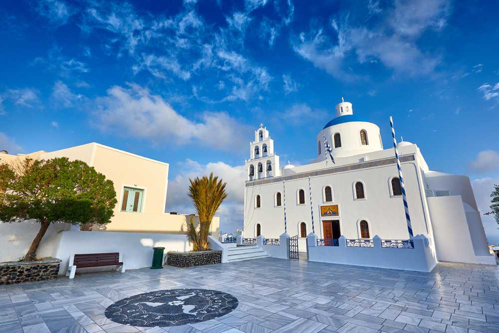 The Church of Panagia Platsani was originally constructed inside the walls of the Castle of Oia. The church was moved to its current location, the village center, and was rebuilt on higher and more stable ground following the earthquake of 1956. The place of worship is dedicated to the Akathist Hymn of the Most Holy Theotokos.